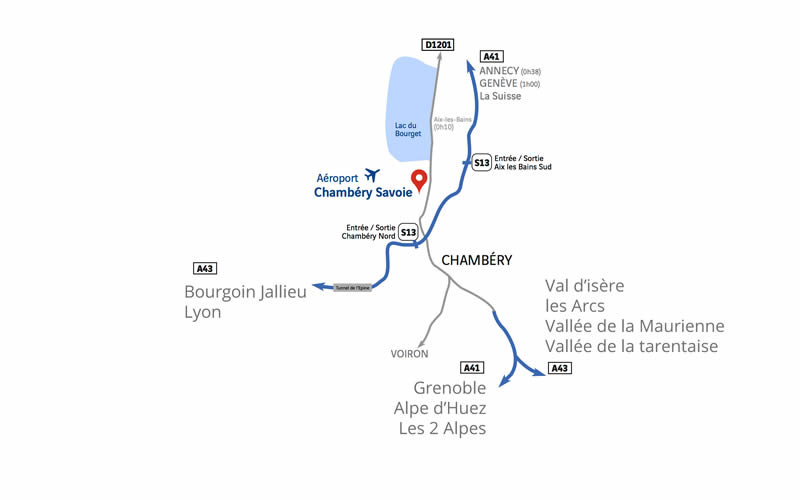 L’accès se fait par l’autoroute A43 jusqu’à Albertville, 2×2 voies jusqu’à Moutiers puis la D902 direction Bourg St Maurice jusqu’à Val d’Isère.